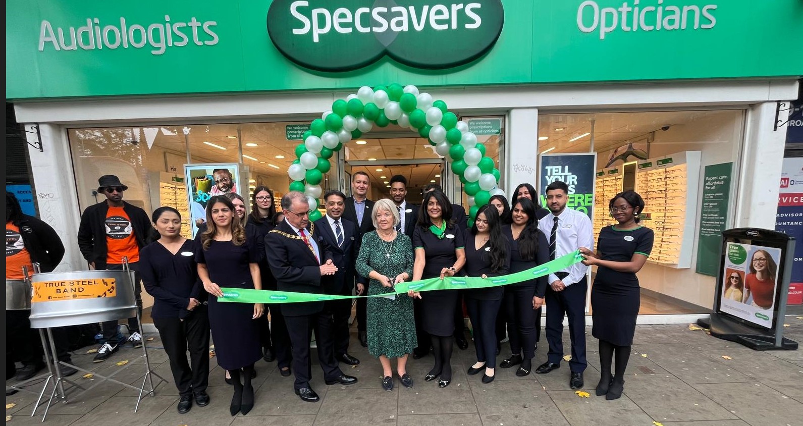 Dame Mary Perkins, co-founder of Specsavers, joined the Mayor of Ealing, Councillor Anthony Kelly, to cut the ribbon on the refitted store. The event, complete with the True Steel Band performing outside, drew a steady stream of onlookers and customers.