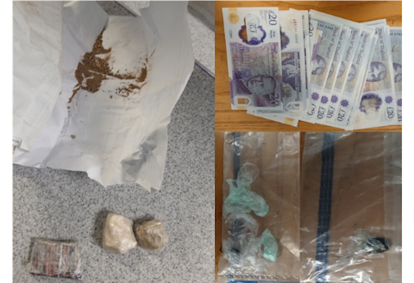 Officers carrying out proactive patrols in the town centre became aware of a man behaving suspiciously and stopped him to carry out a search. During the search, they found what was described as a substantial quantity of suspected drugs along with counterfeit currency.
