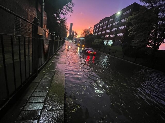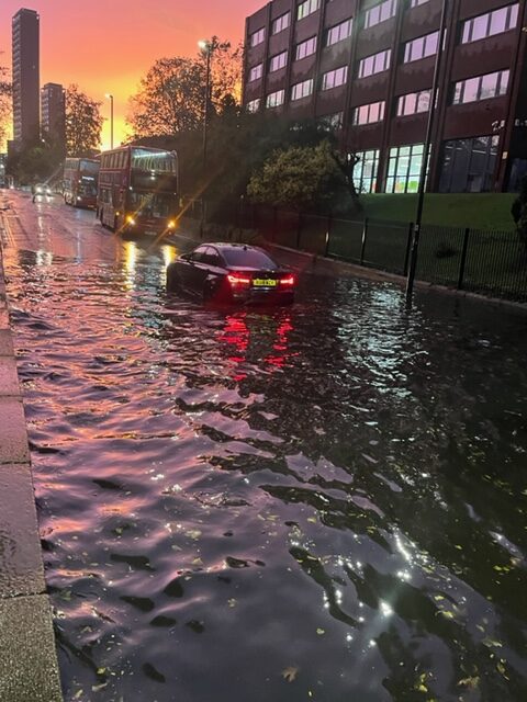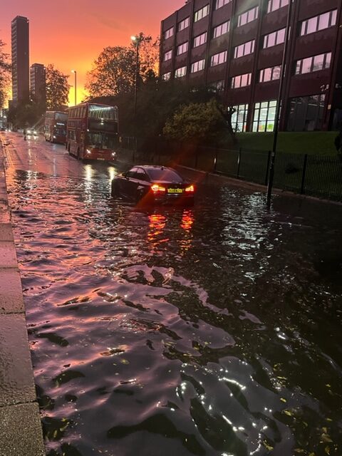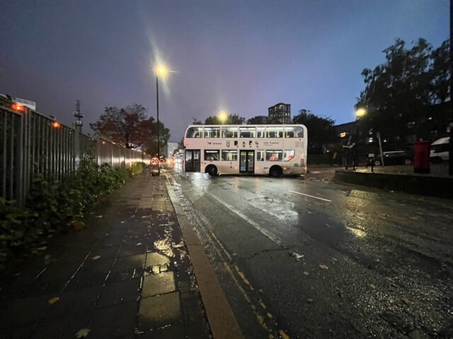 Since Friday night (21 October 2022), the road under the bridge, has seen heavy rain flood the area and has seen delays in local bus 266 as Transport for London finds alternatives ways for its drivers to avoid the area.