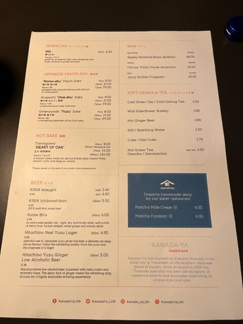 Kanada-Ya was founded in 2009 in Japan by Kanada Kazuhiro and arrived in the UK in 2014 with its first branch opening in Covent Garden and since then other London branches have opened in Angel, Piccadilly and off Carnaby Street.