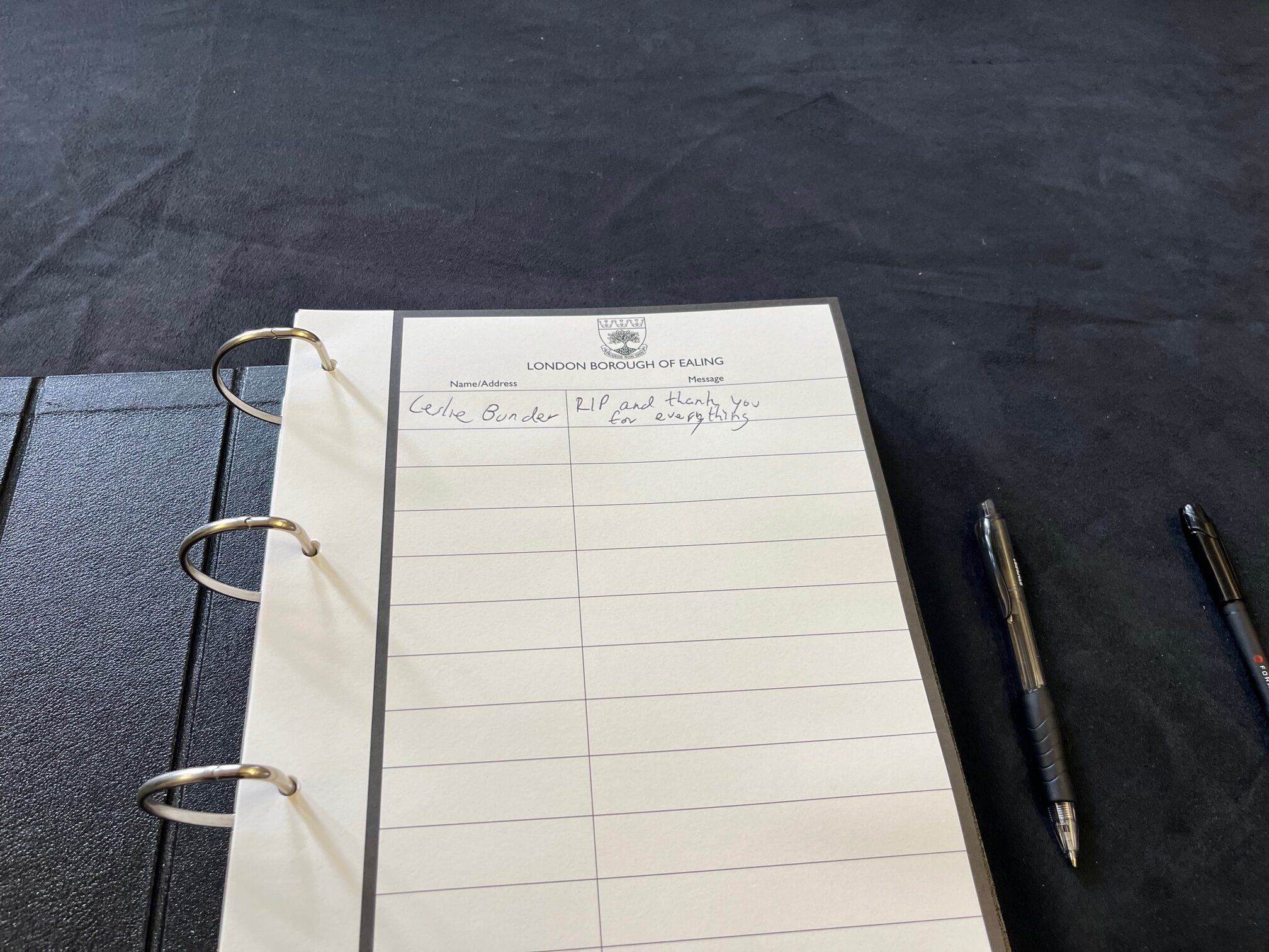 The Book of Condolence will be open for people to sign between 9am and 10pm every day. Ealing Council has not said yet when it will close the book.