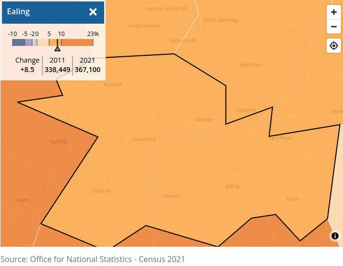 The London Borough of Ealing is now London’s third largest with 367,100 people living across our 7 towns, new data released today (28 June 2022) from the 2021 Census has been revealed by the Office of National Statistics.