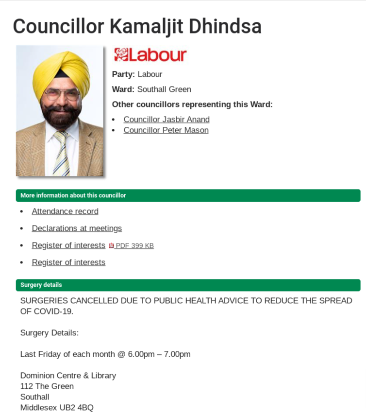 “When Councillor Mason became our ward councillor in 2018, his council page showed surgeries taking place from 2018 onwards until it was changed to say no surgeries due to Covid during 2020. No where did it ever state he never met on Friday evenings. To the outside world, Councillor Mason gave the impression he was there for residents to meet him at surgeries, but the reality was that he never saw us at surgeries. It just shows that he didn’t want to meet with us in Southall. This has allowed him avoid hearing or listening directly to the people who use surgeries and attend them. Residents need surgeries as a way to seek help from elected councillors.
