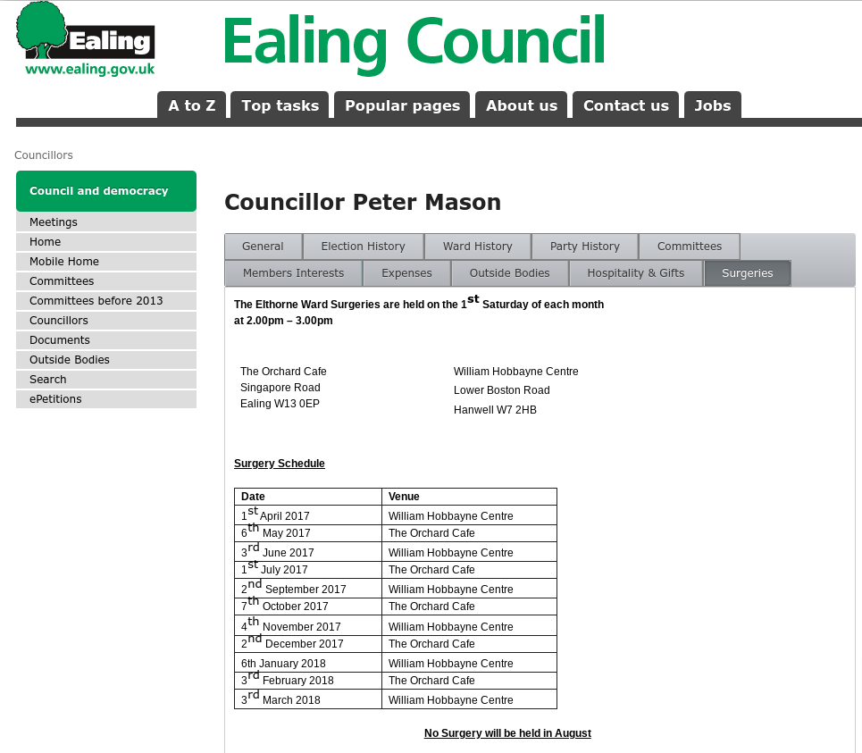 “Councillor Peter Mason who also represents Southall Green ward, has never done a surgery on the last Friday of the month due to him claiming he is observing the Sabbath, but he has never offered us an alternative day when the matter was discussed at a ward forum.