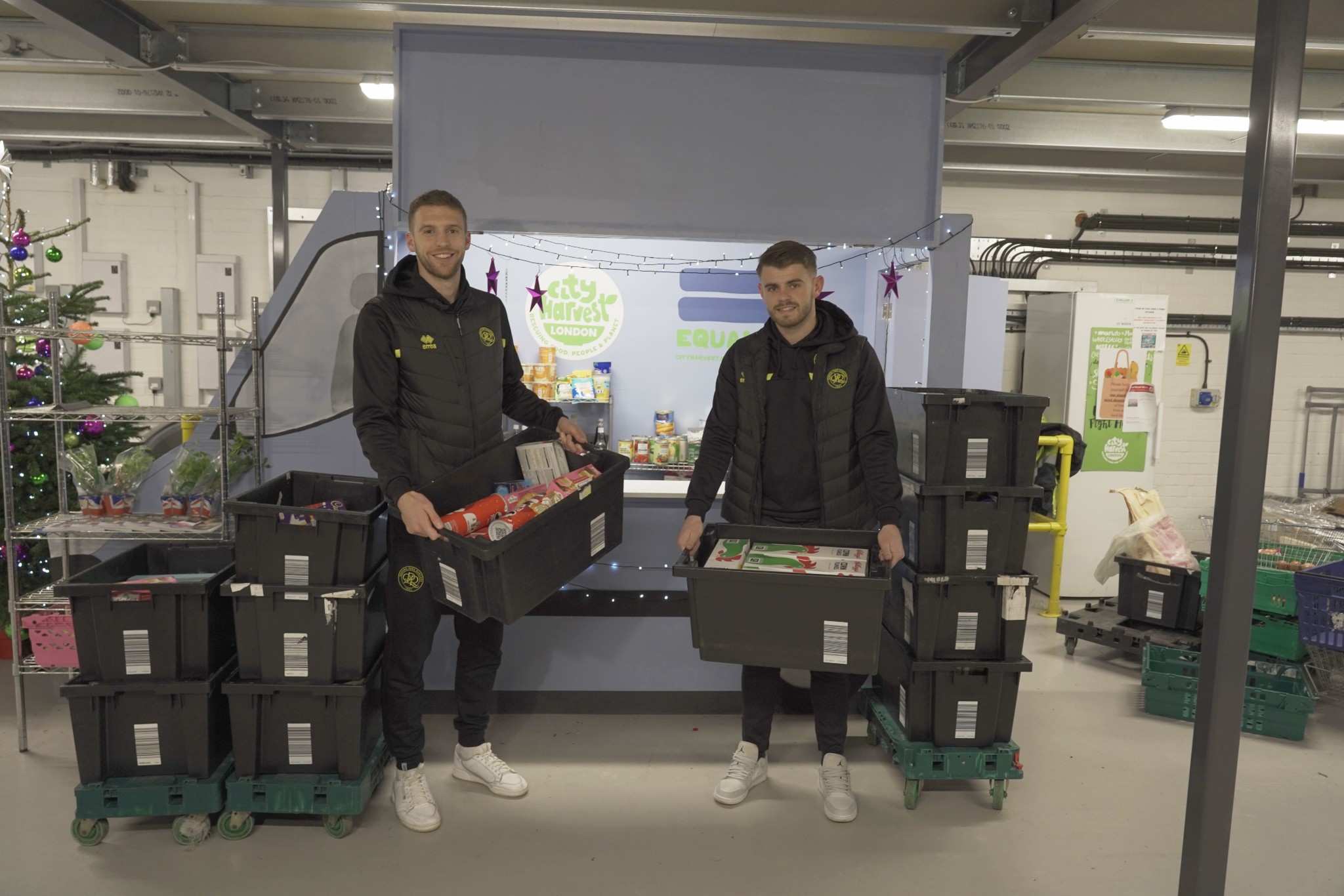 Championship footballers Sam Field and Charlie Kelman from QPR have visited Acton food charity City Harvest London as part of QPR’s festive visits to the community.