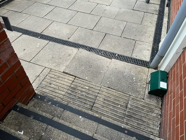 According to The Oaks management, which runs the centre for NFU Mutual, the land on which the broken paving stones and steps is owned by housing association L&Q. It says the public has been raising the issue with them and they have been trying to get L&Q to look into it and get it resolved.