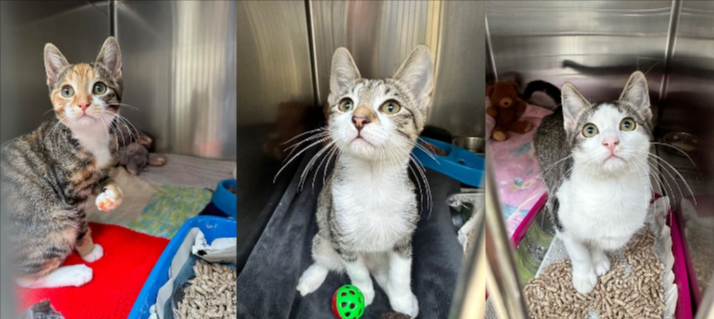 The RSPCA said the kittens were taken to RSPCA Finsbury Park Animal Hospital where they were treated for fleas. Staff have named them Lita, Jeff and Matt and are now at an RSPCA branch centre ready for rehoming.