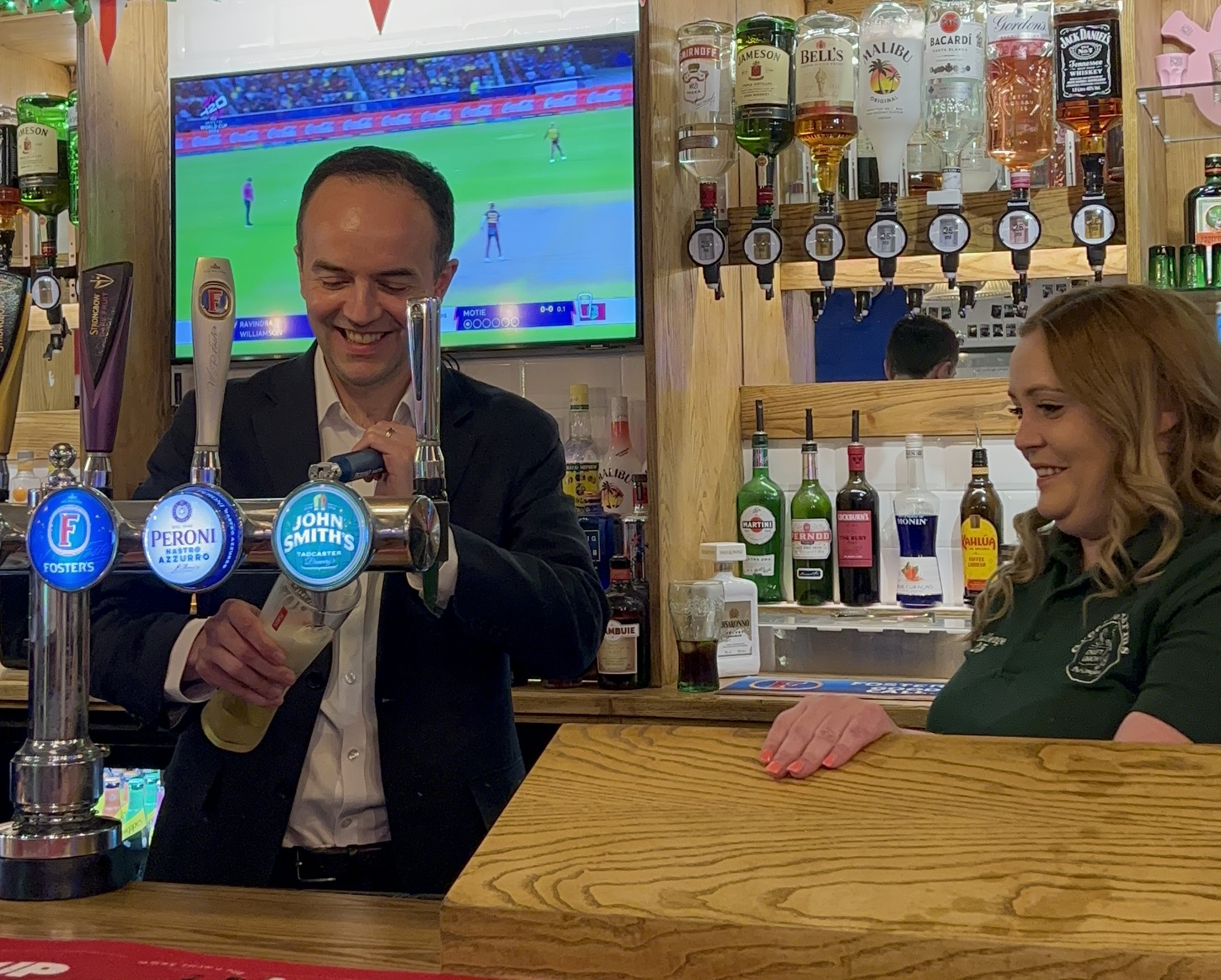 James Murray, who is seeking to be re-elected as the Labour and Co-operative MP for Ealing North has spoken of Labour’s plans to reduce business rates on pubs and high street businesses as well as tackle anti-social behaviour during a visit to the Greenford Arms in Greenford Broadway.