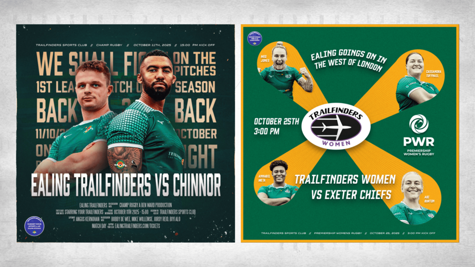 The first posters will mark the sides’ season openers: the men’s Championship Rugby fixture against Chinnor RFC on 11 October 2025, with artwork inspired by The Darkest Hour (2017), and Trailfinders Women’s PWR clash with Exeter Chiefs on 25 October 2025, drawing on Passport to Pimlico (1949).
